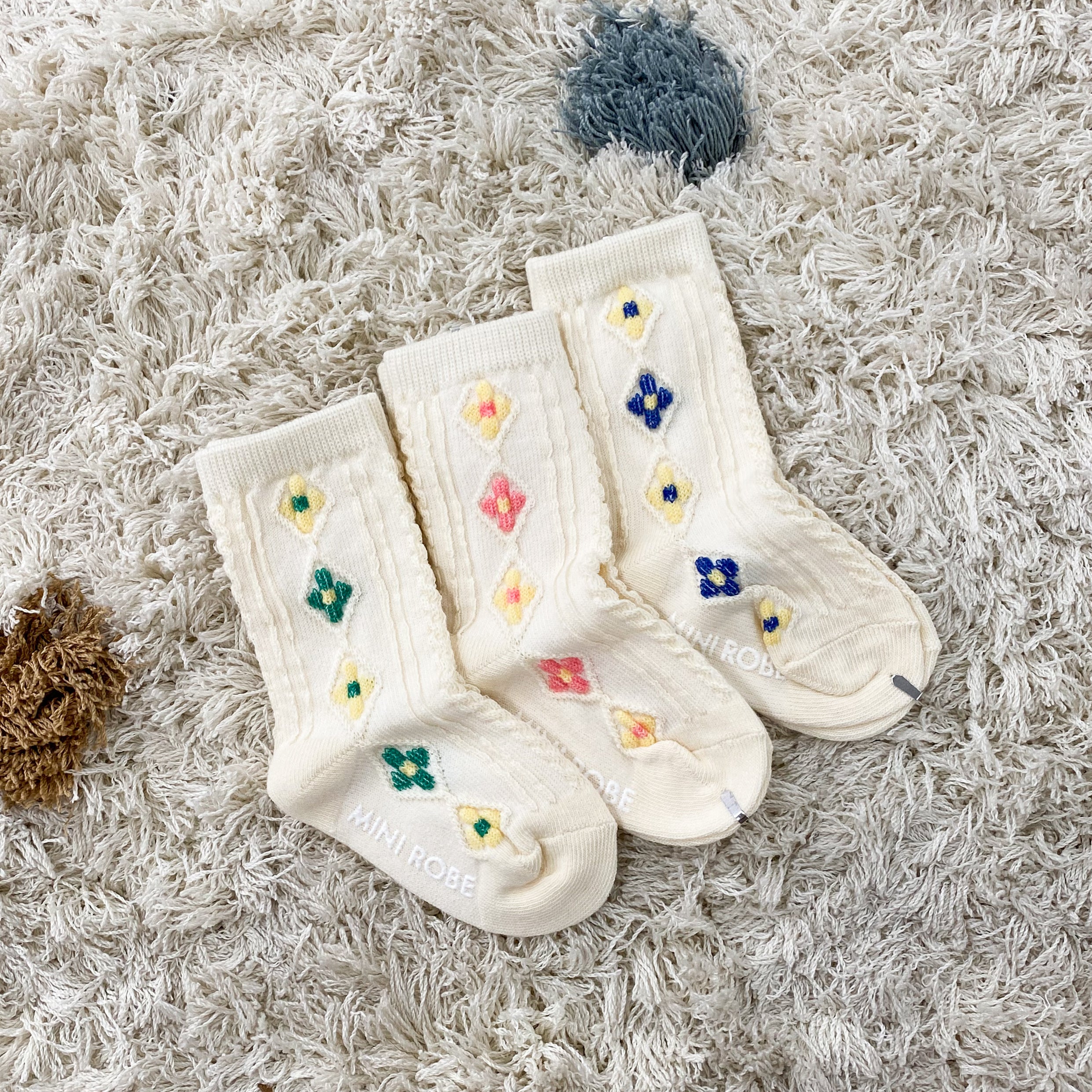 3 paires de bas avec fleurs