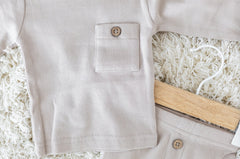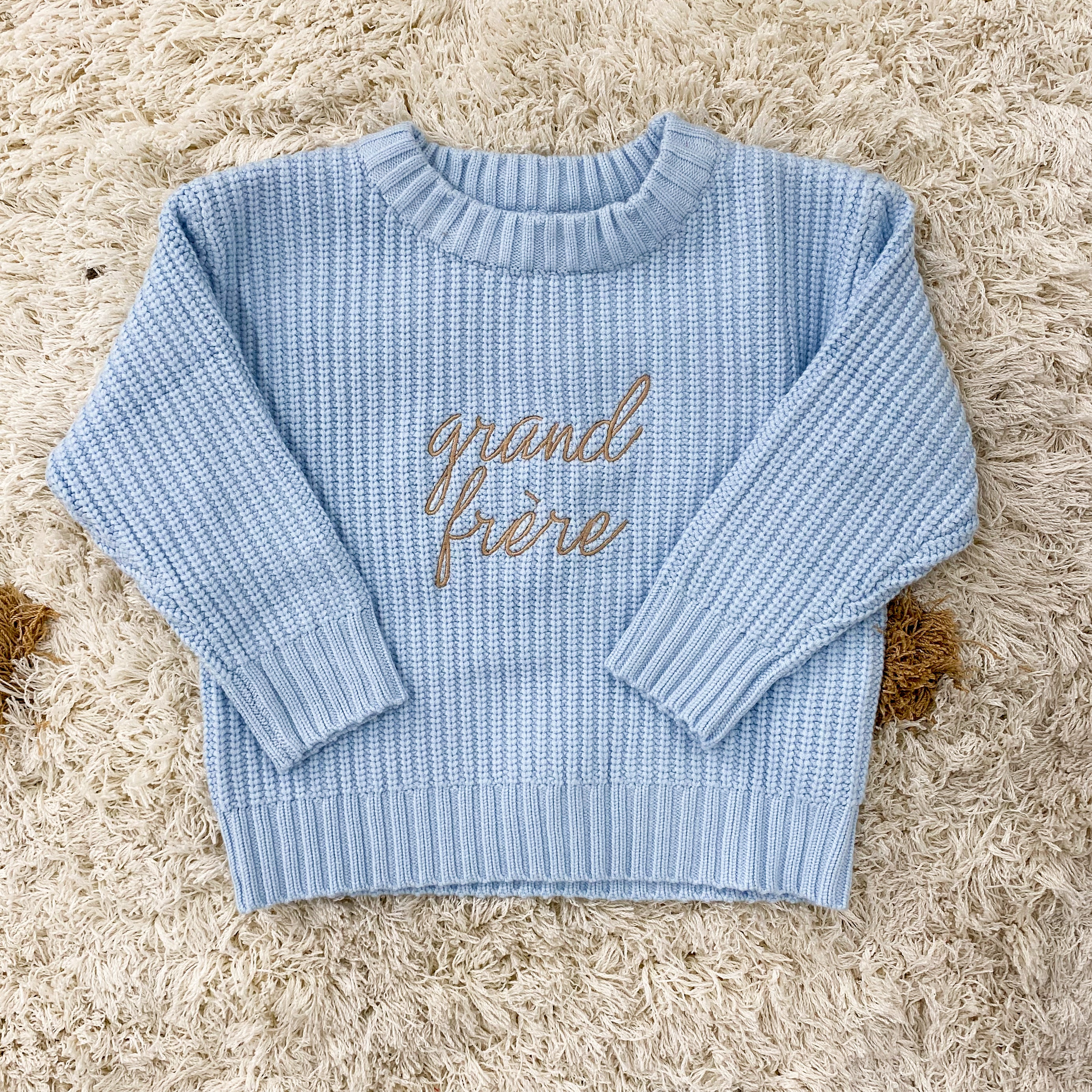 Tricot prêt à partir arctic avec l'écriture grand frère en beige.