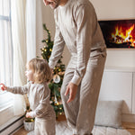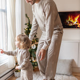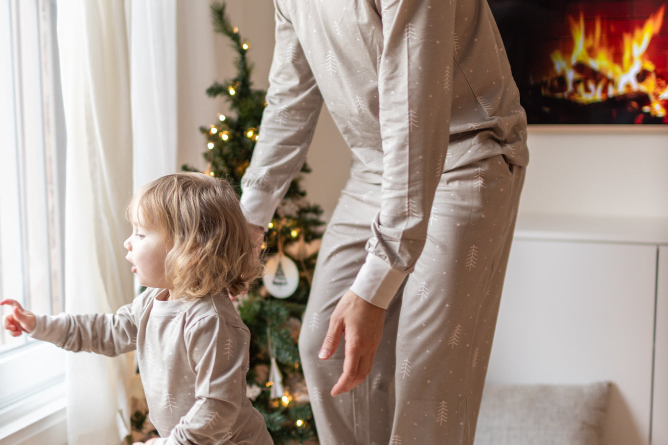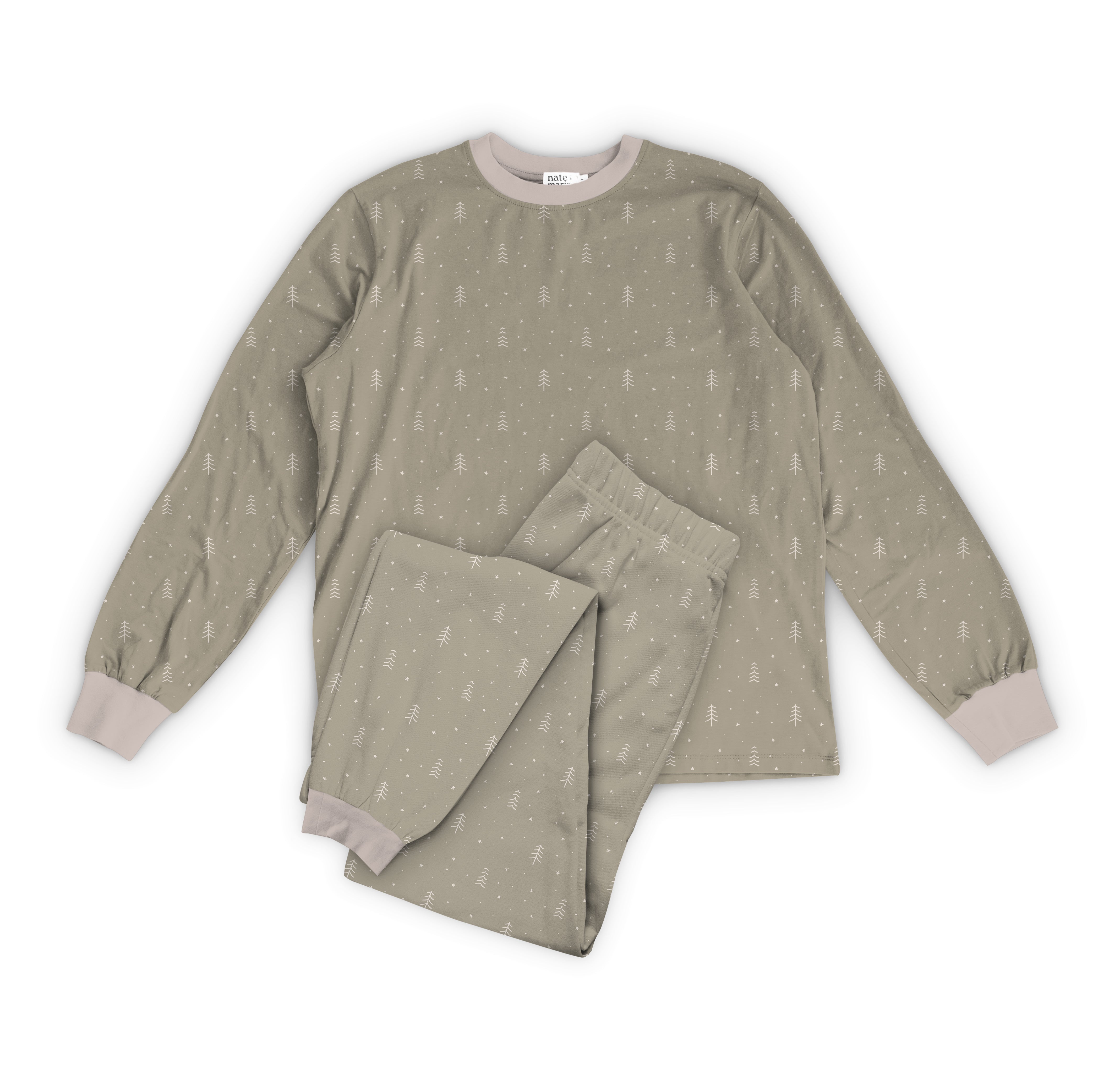 Pyjama deux pièces avec poches sur le bas pour adultes avec un joli motif de sapins. Le coupe ample permet aux hommes et aux femmes de porter ce pyjama. Les hommes peuvent prendre une taille au dessus que celle habituelle.