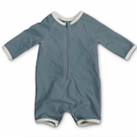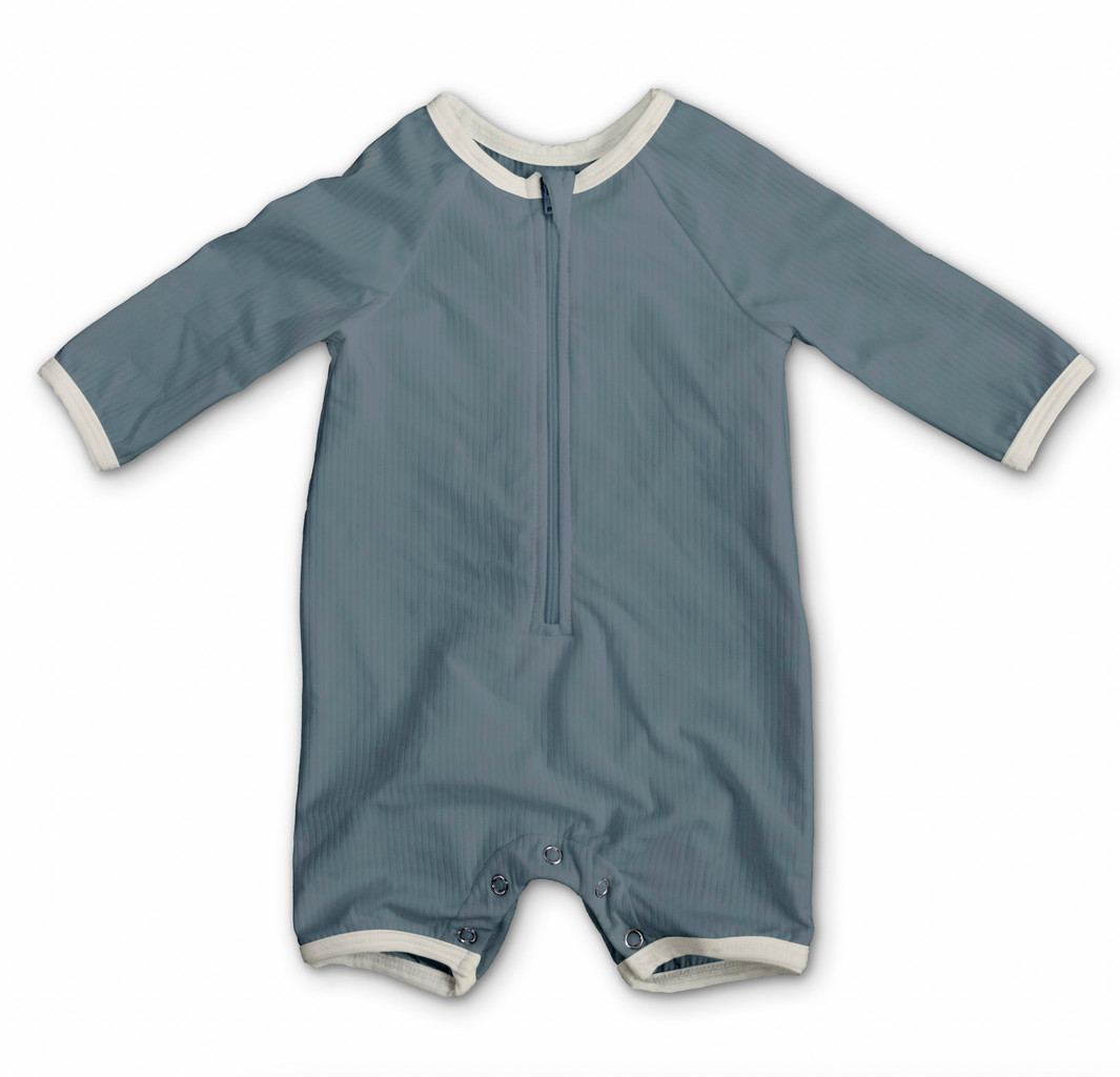 Un rashguard une pièce avec fermeture éclaire au devant.