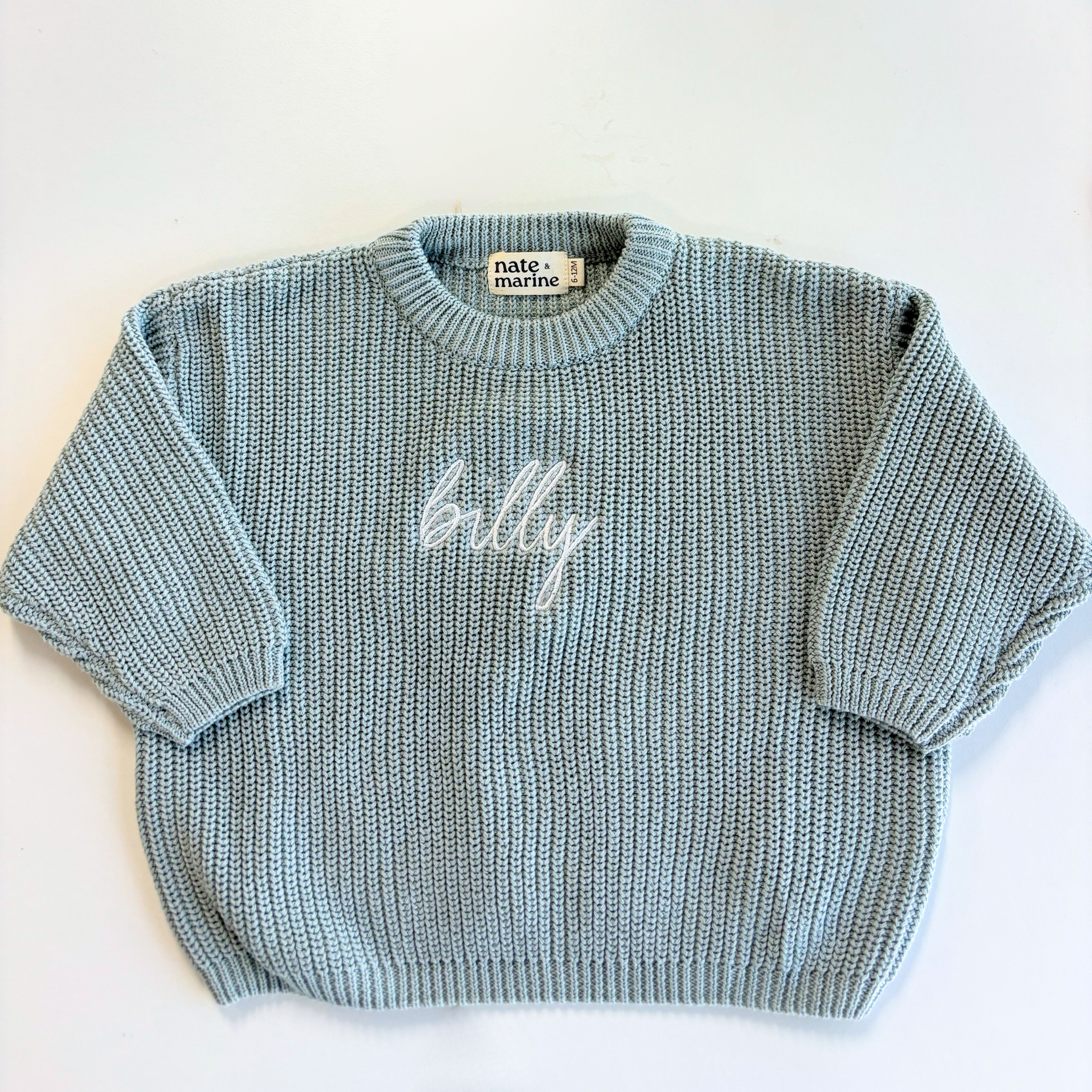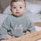 Sur la photo, le tricot est personnalisé avec l'écriture attachée en couleur ivoire.