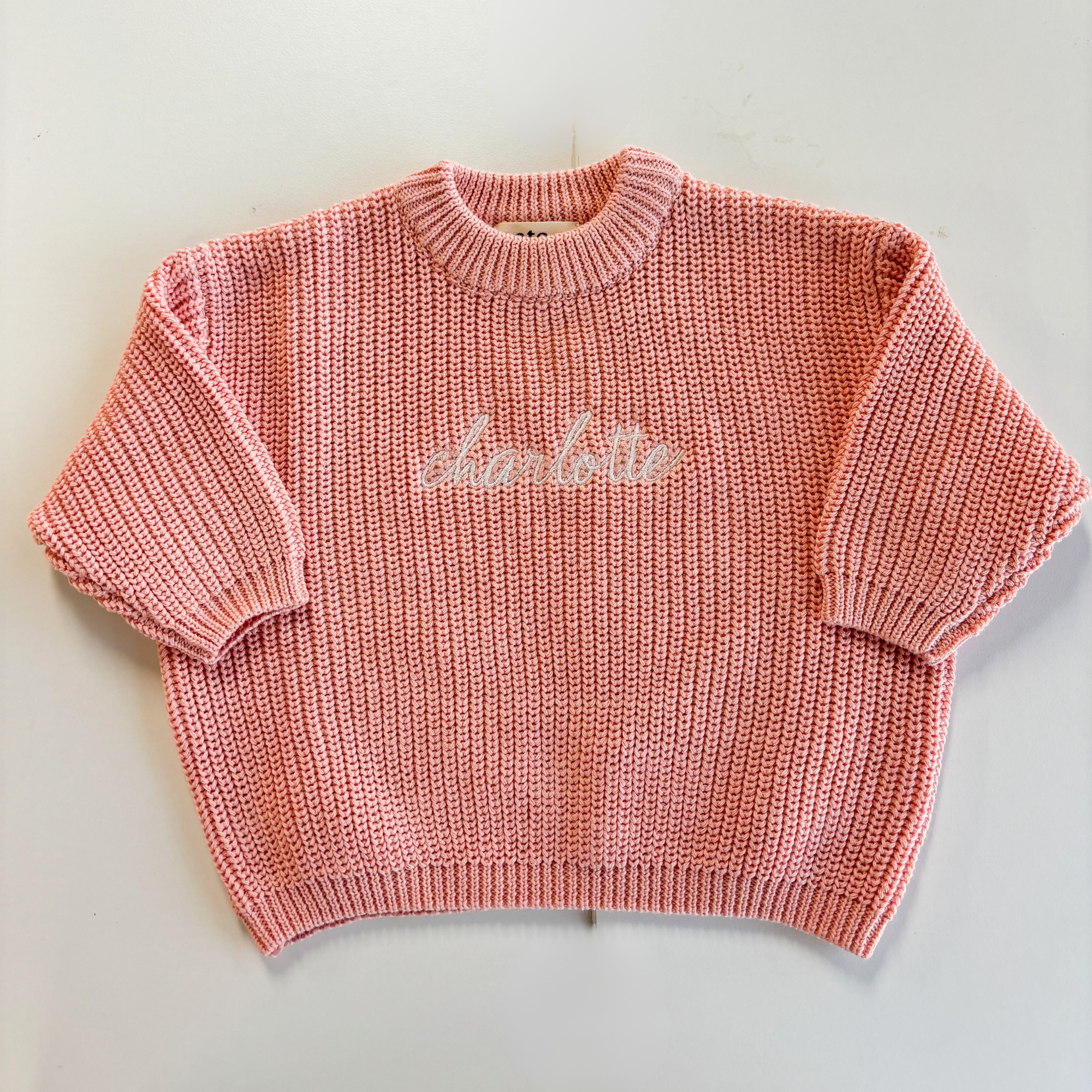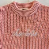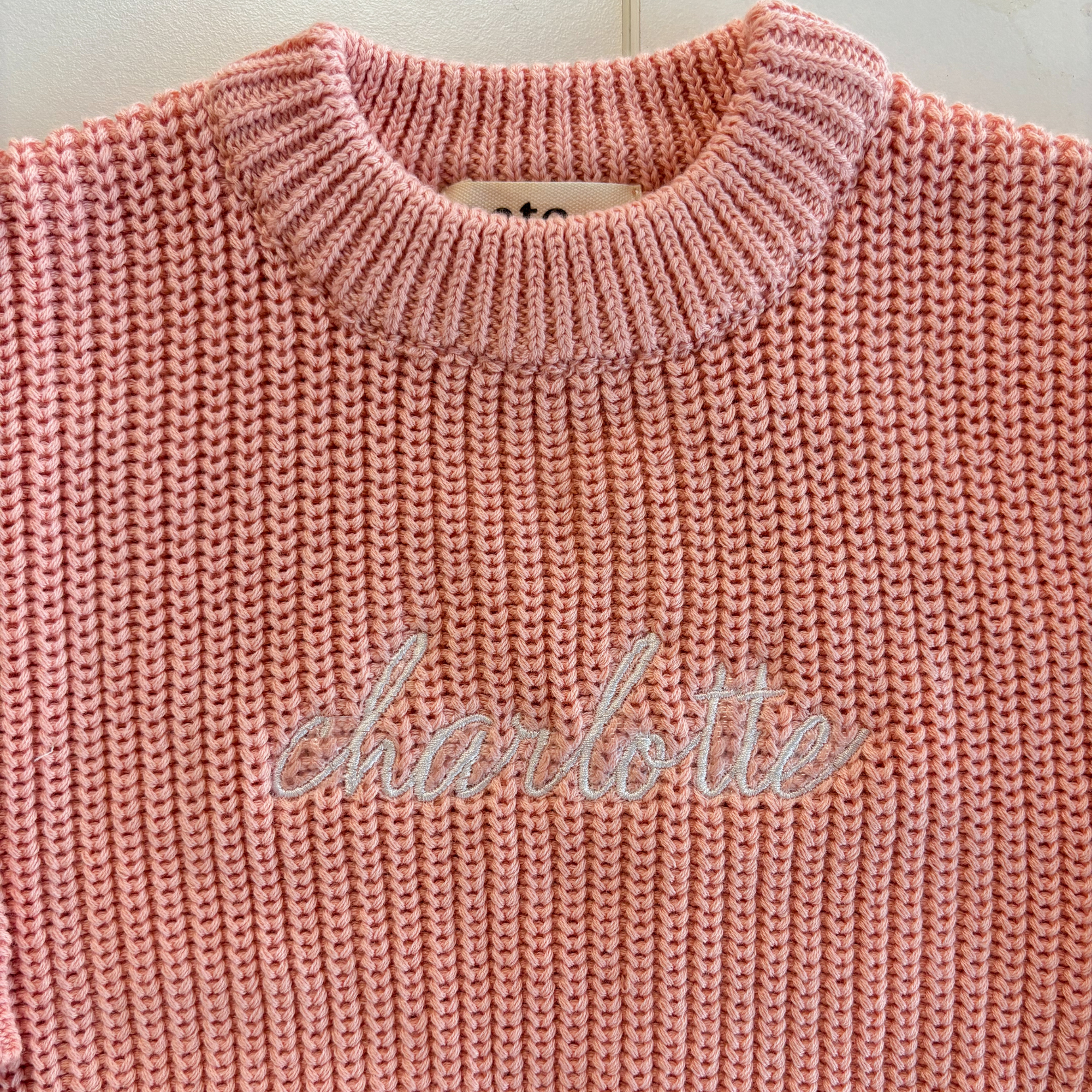 Sur la photo, le tricot est personnalisé avec l'écriture attachée en couleur ivoire.